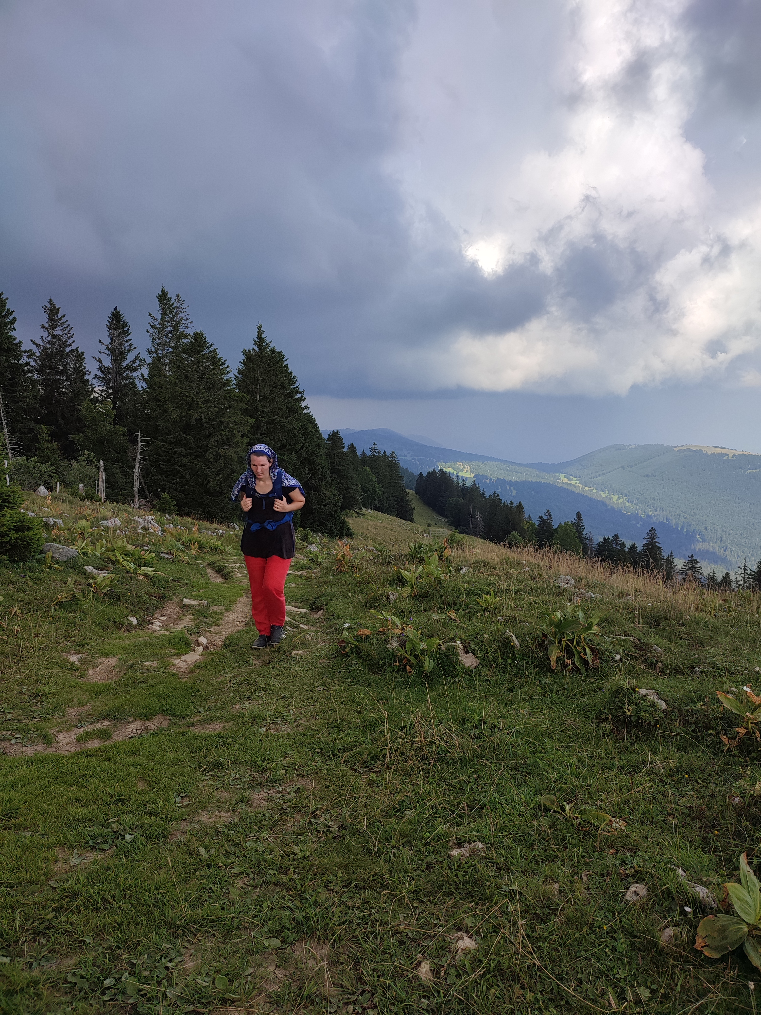 hinauf. Oli entschliesst sich abzubrechen und wir essen am Waldrand noch zusammen Mittag. Kaum losgelaufen, kommt ein Gewitter