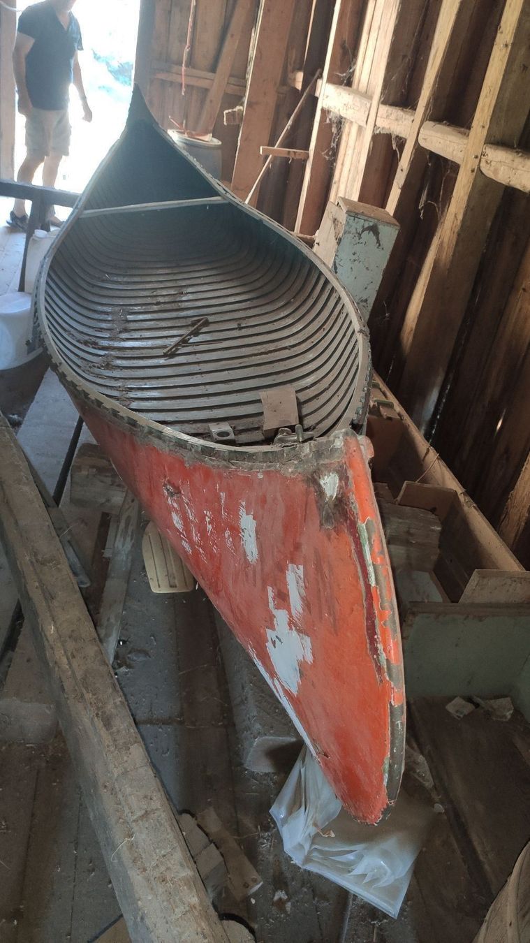 Also: Ich kaufte! Bei 50 Fränkli ist nicht viel verloren. Am 23.01.2021 holte ich es am Untersee (Teil des Bodensees) ab. Es lag in einer Scheune. Laut dem Besitzer bereits seit 40 Jahren ohne Wasserkontakt! Sofort fuhr ich damit zum Bootsbauer. Er begann sofort mit der Aufarbeitung. Das Boot kommt aus einer norwegischen Ski & Canoefabrik. Es hat Baujahr 1923!
