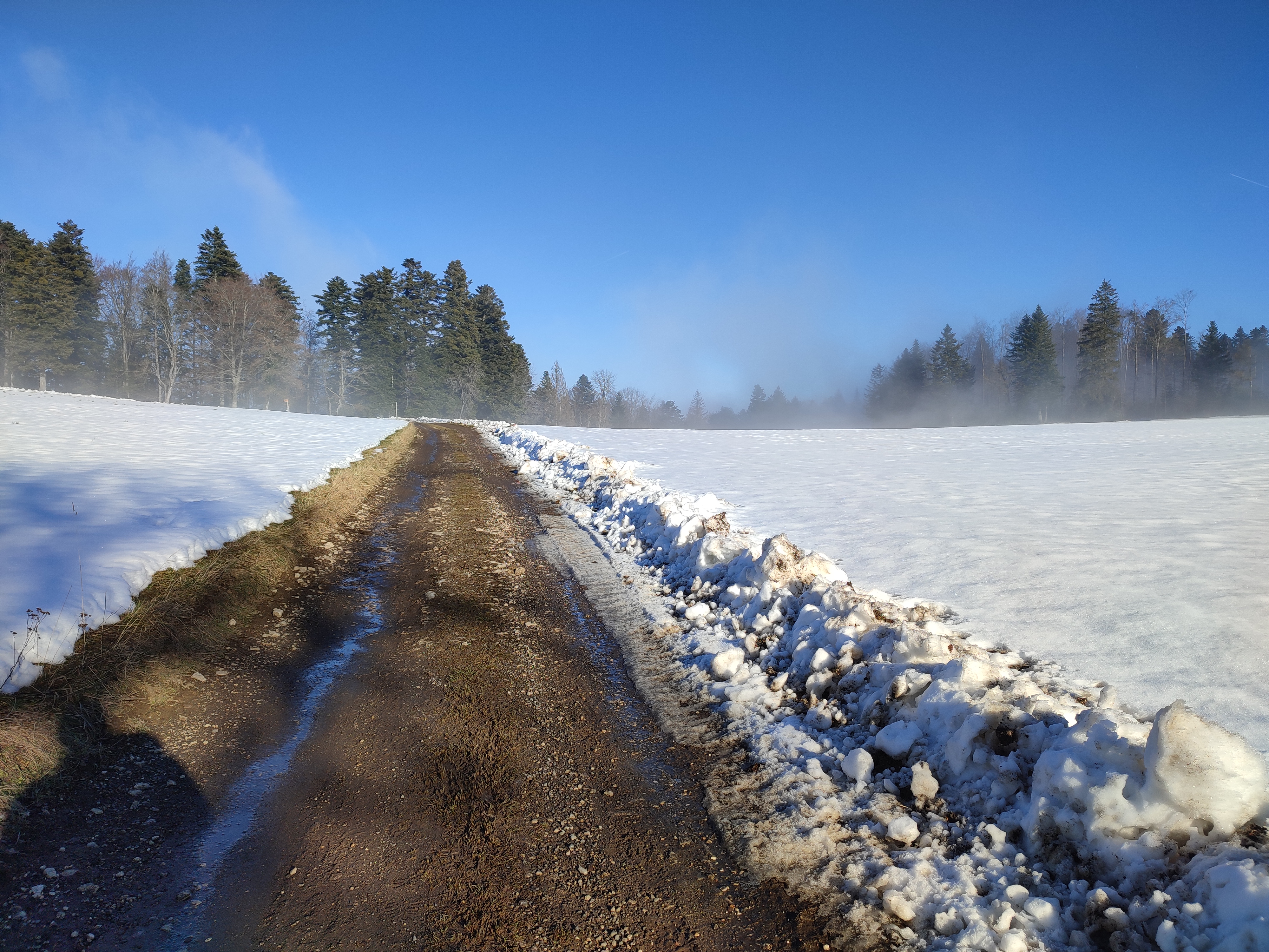 Samstag, 19. März 2022 3. Etappe Saingelégier - Soubey Christoph, Karin, Ueli |